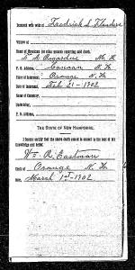 - [S592] The Church of Jesus Christ of Latter-day Saints. New Hampshire Death Records, 1654-1947, Record Type: Online databaseand image, Name Of Person: Frederick L. Flanders record, Url:http://www.familysearch.org. N.p.: Name: Access Date, viewed 26 November 2011;.