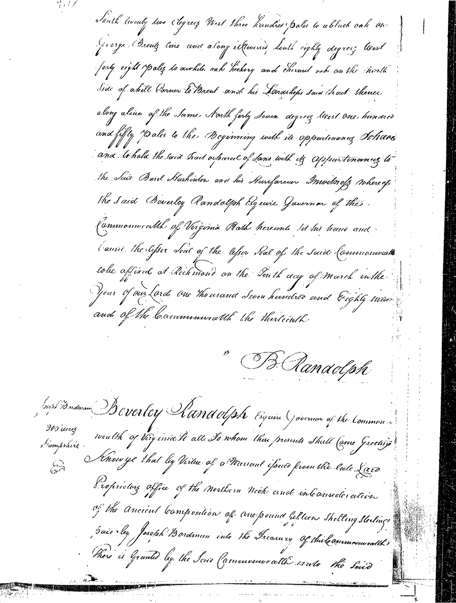 - [S379] Library Of Virginia. "Virginia Land Office Patents and Grants/Northern Neck Grants and Surveys." Database and images at http://www.lva.virginia.gov/public/guides/opac/lonnabout.htm. Joseph Bordman (grantee) entry.