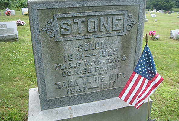 - [S1952] Unknown author. Organization Index to Pension Files of Veterans Who Served Between1861 and 1900: citing NARA microfilm publication T289, Schedule: CivilWar Pension, Persons Of Interest: Solon Stone record, Jurisdiction:Pennsylvania and West Virginia, Bibliography Locat. N.p.: Name: Fold 3, http://www.fold3.com, 2011, Access Date, accessed 26October 2011;.